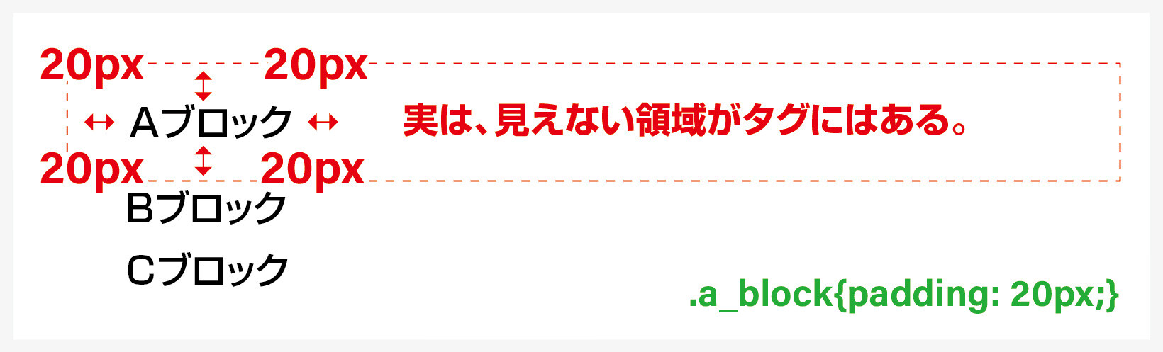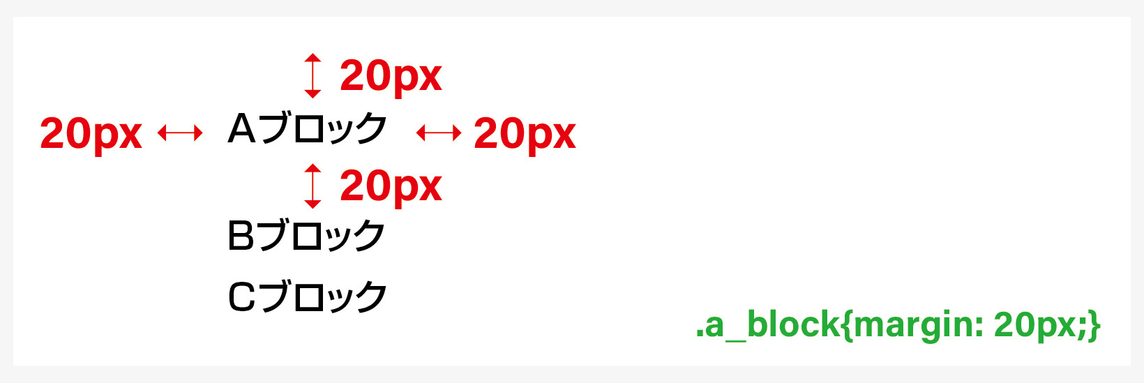 意味 / Aブロックに隣接するタグの距離を20pxにします。