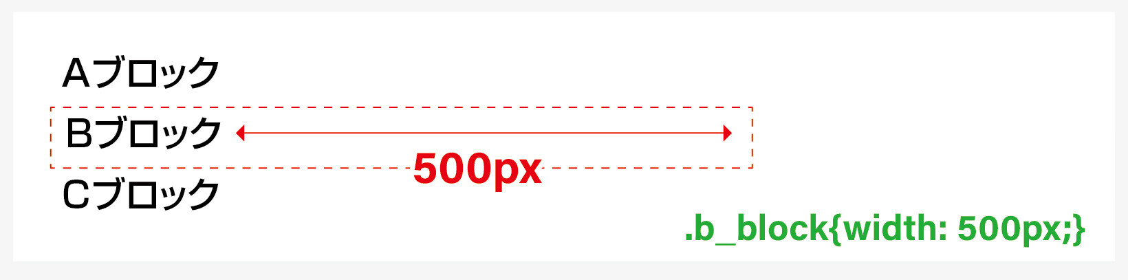 意味 / b_blockクラスのタグの横幅領域を500pxにします。