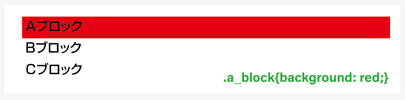 意味 / a_blockクラスの背景をred(赤)にします。