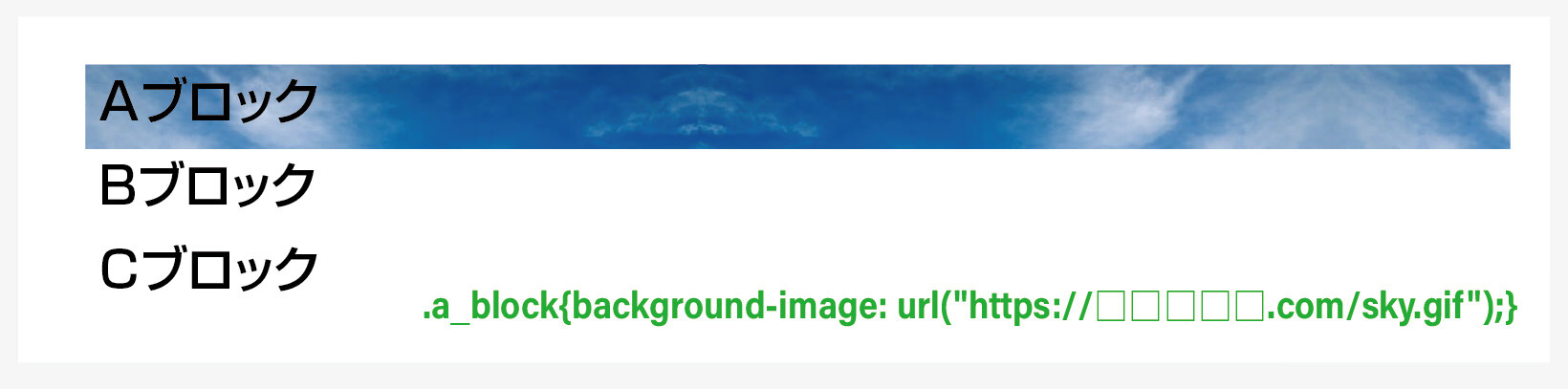 意味 / a_blockクラスの背景画像を「sky.gif」にします。