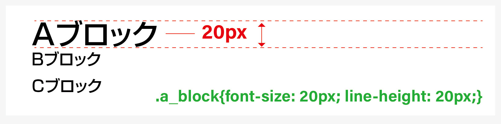 意味 / a_blockクラスのフォントの大きさと行間を20pxにします。