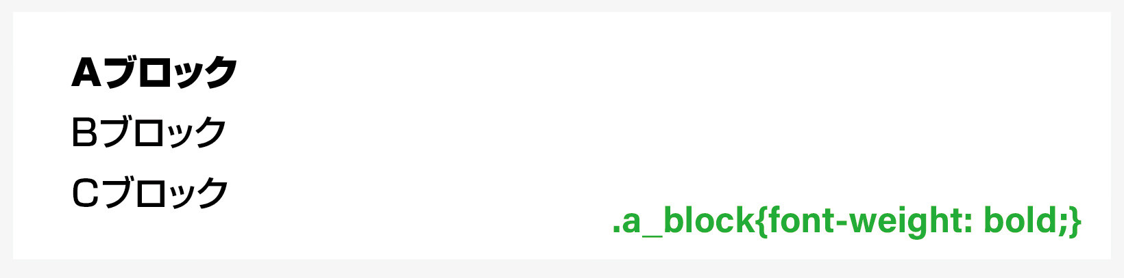 意味 / a_blockクラスのフォントの太さをbold(太く)します。