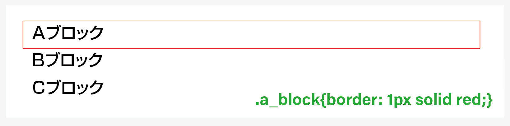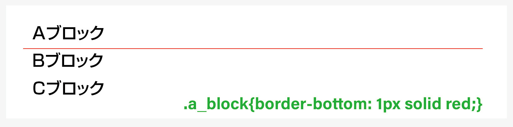 意味 / a_blockクラスの外枠下のみに1pxの赤い直線を表示します。