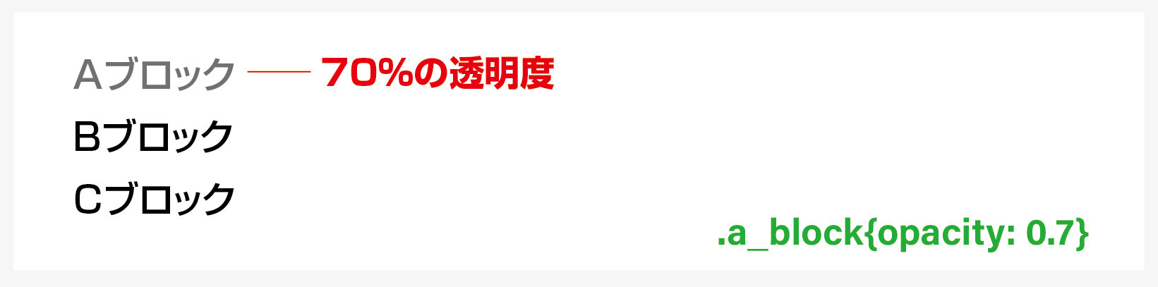意味 / a_blockクラス要素の透明度を70%にします。