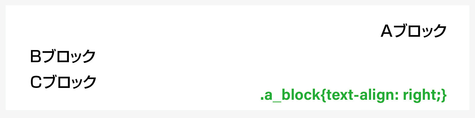 意味 / a_blockクラス内のテキストを右寄せにします。