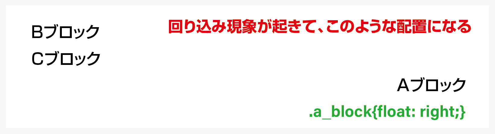 意味 / a_blockクラスの要素が終わった直後に「空白」をブロック要素で入れて、回り込みを解除します。