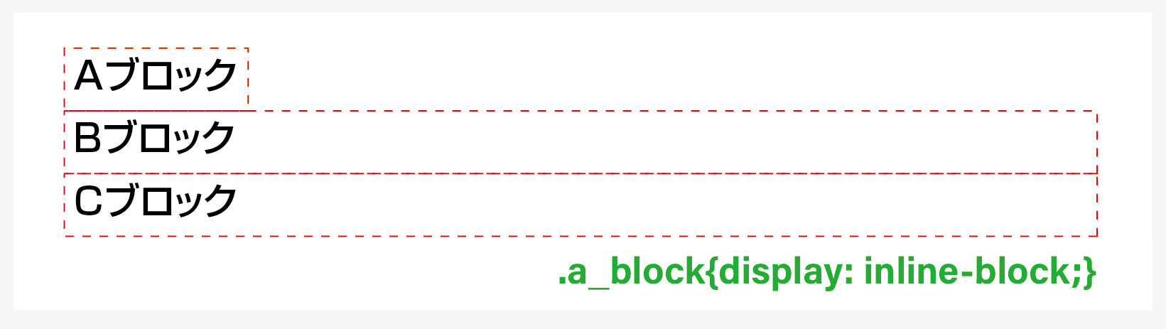 意味 / a_blockクラスの要素をインラインブロックにします。