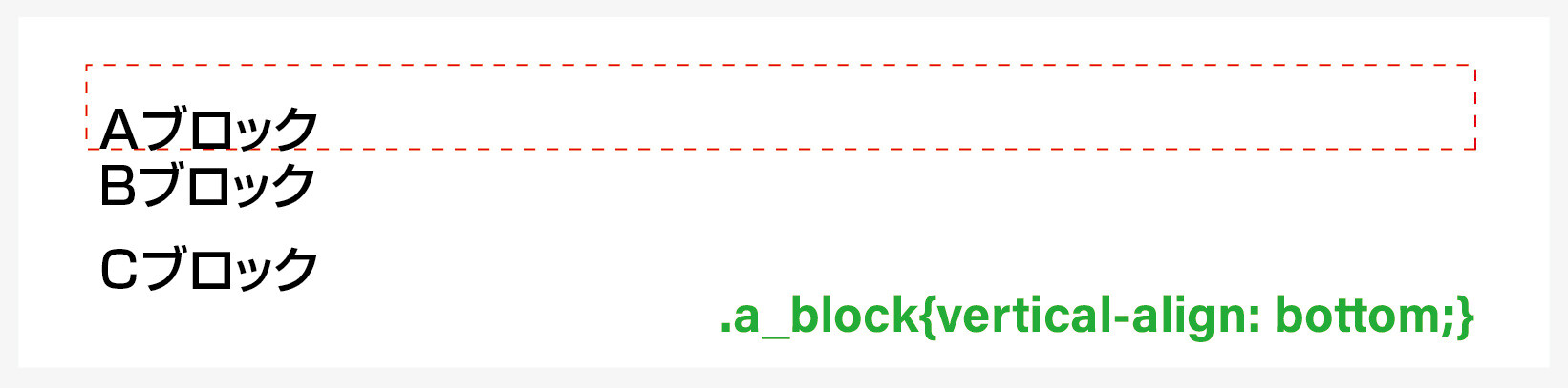 意味 / 「Aブロック」という文字を、a_blockクラス内の枠内の下に沿わせます。