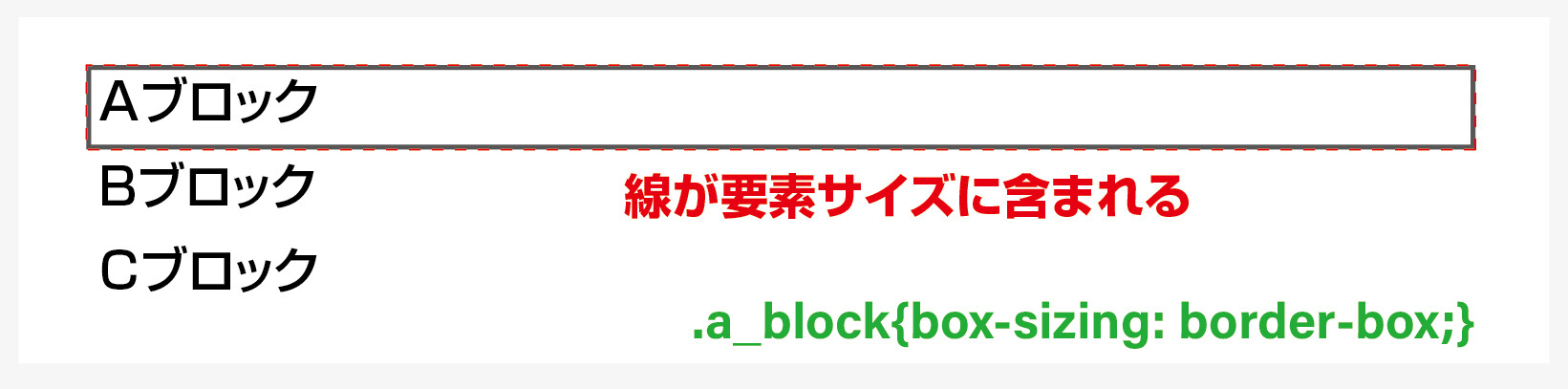 意味 / a_blockクラスの要素の外枠にあたる線を、その要素の大きさに含める。
