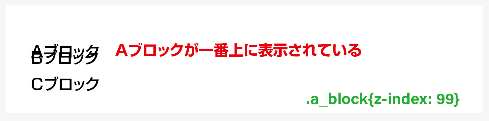 意味 / a_blockクラスの要素を、「値」98以下の要素より上に表示します。