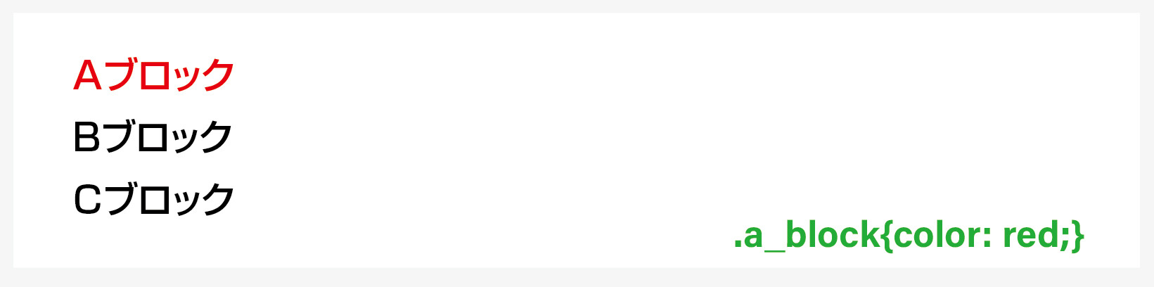 意味 / a_blockクラスのフォントの色をred(赤色)にします。