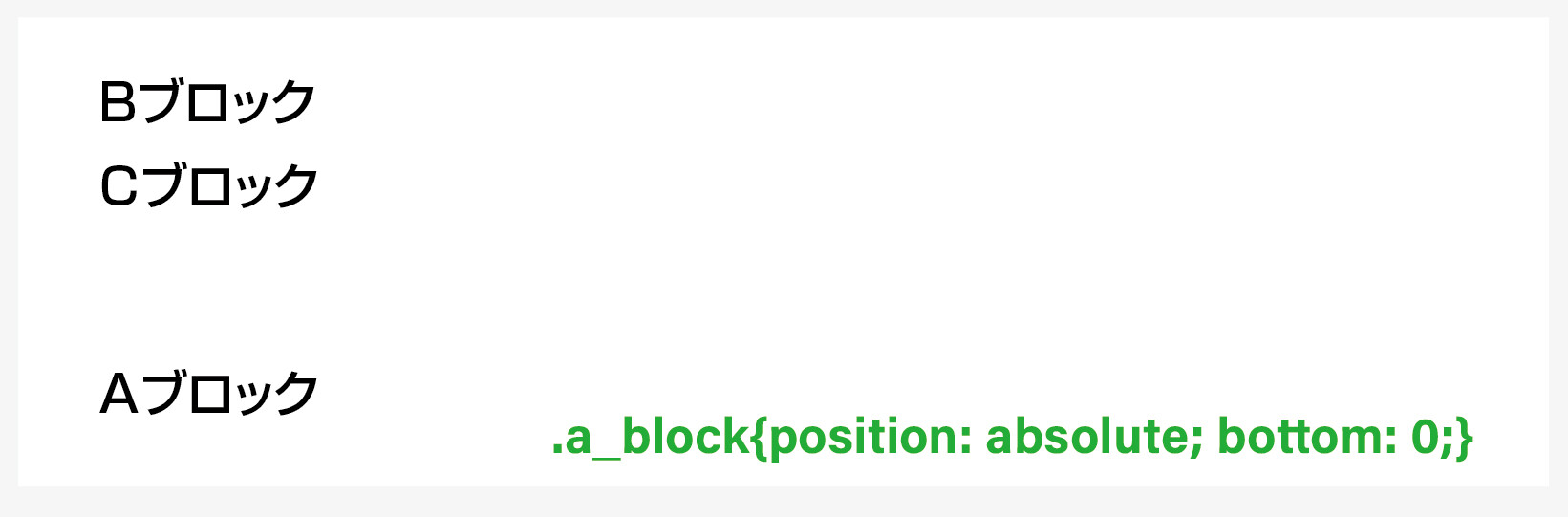 意味 / a_blockクラスの要素を、HTML内の一番下部に表示します。