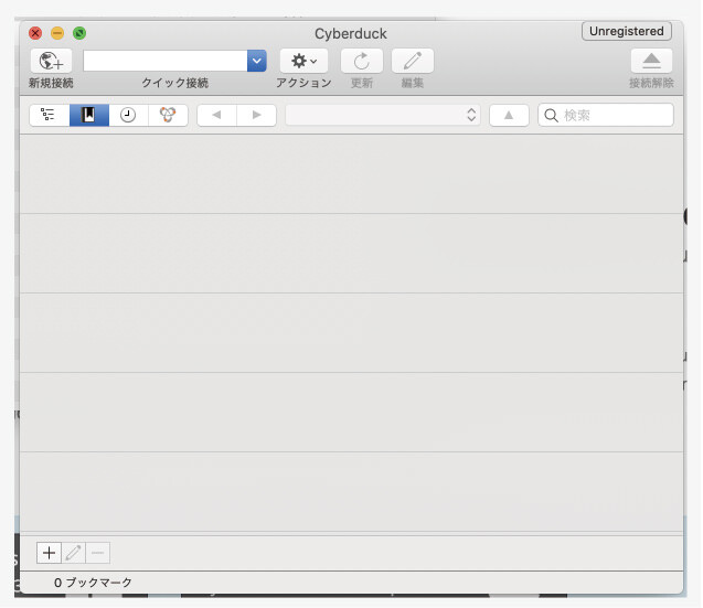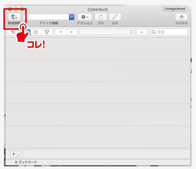 Cyberduckのメイン画面になりますので、接続していきます。