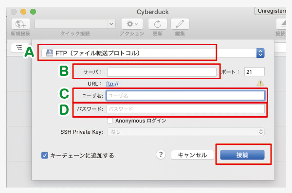 Cyberduckの新規接続