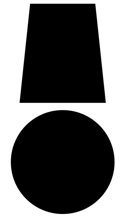 まずは、土台の円と先ほど作成した台形を、時計の12時の方向になるように、センター合わせにしましょう。