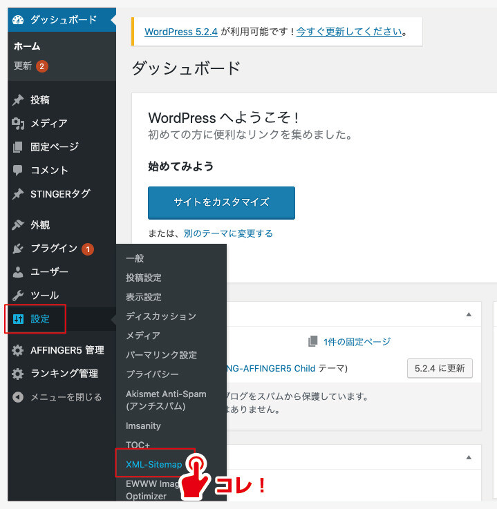 XML Sitemapsのインストールが終わりましたら、設定をしていきます。