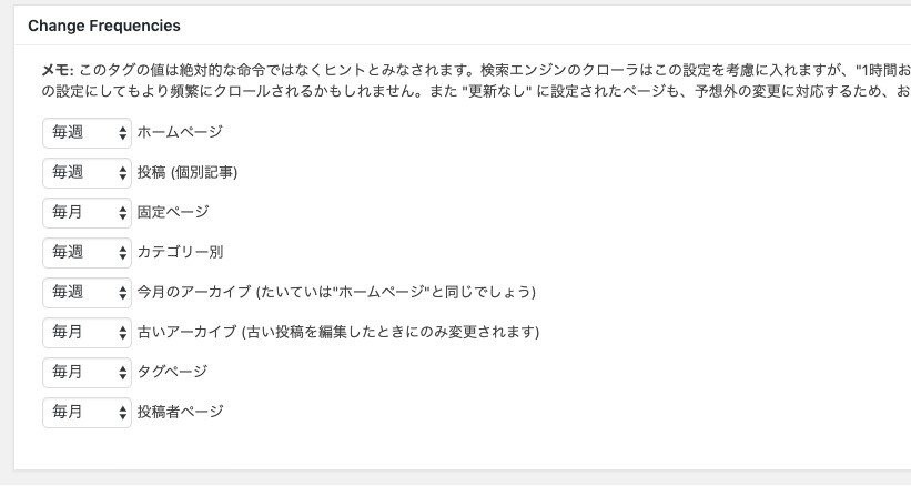 「Change Frequencies」では「どれくらいの頻度で記事が更新される予定ですか?」と聞かれています。