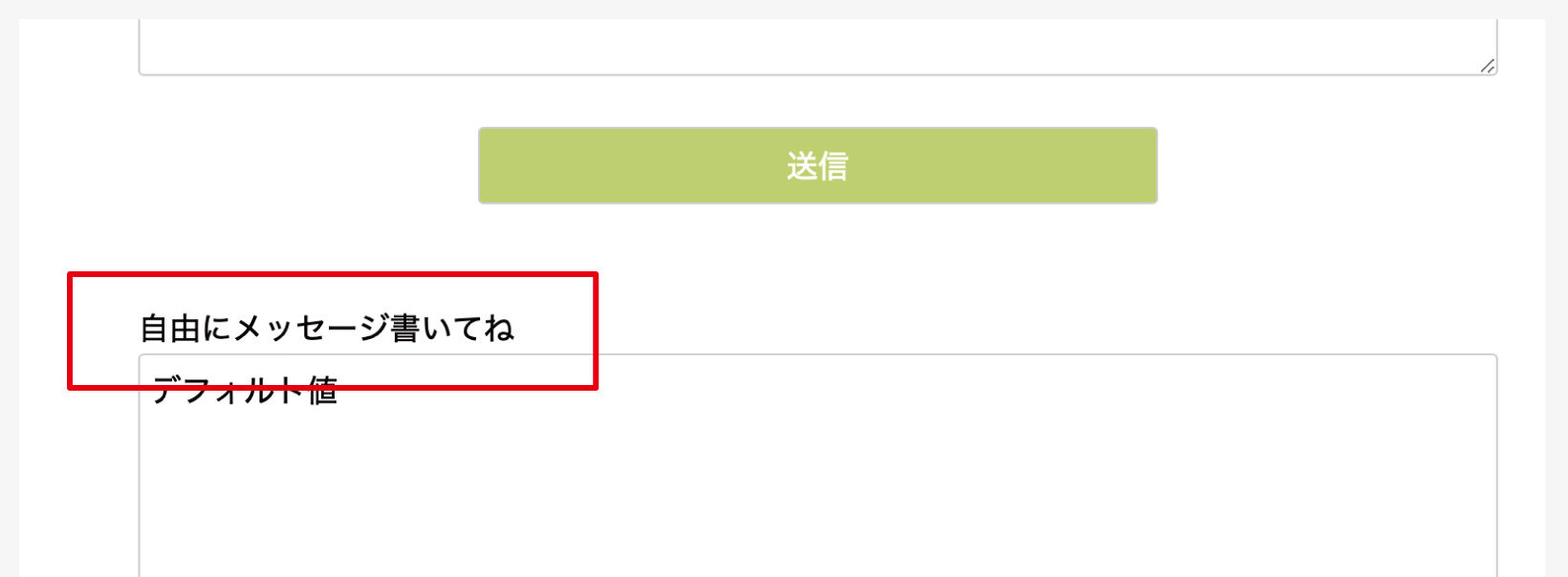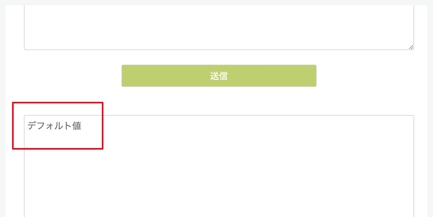6. デフォルト値は、以下の画像のように見本のような文字を表示しておくことができます。こちらの文字は、ユーザーが入力すると消えます。