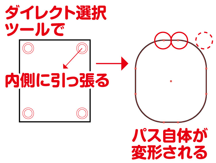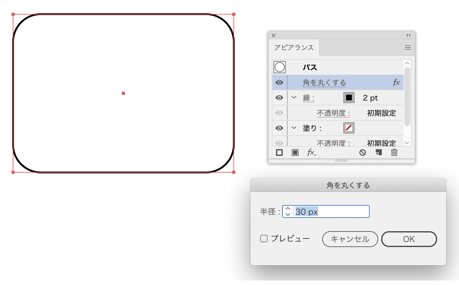 パスを変形させる事なく、角を丸く表示する事ができます。