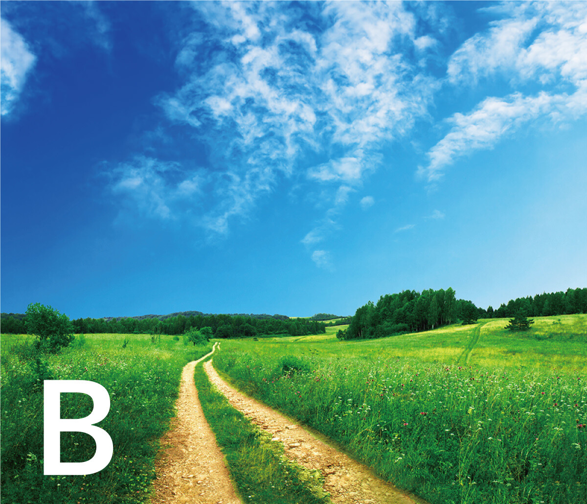 できれば、Aのように白色だけの文字を「どん」と何も手を加えず置けるのがデザイン性的にも、制作時間的にもベストですが、写真素材によってはそうはいかない事も多いです。