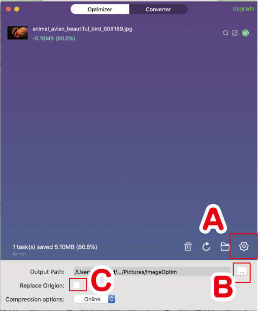 C-チェックを入れると、変換前の元の画像を上書きして圧縮をかける事ができます。元画像は完全になくなりますので、消えるのが嫌な方はチェックを入れないでおきましょう。