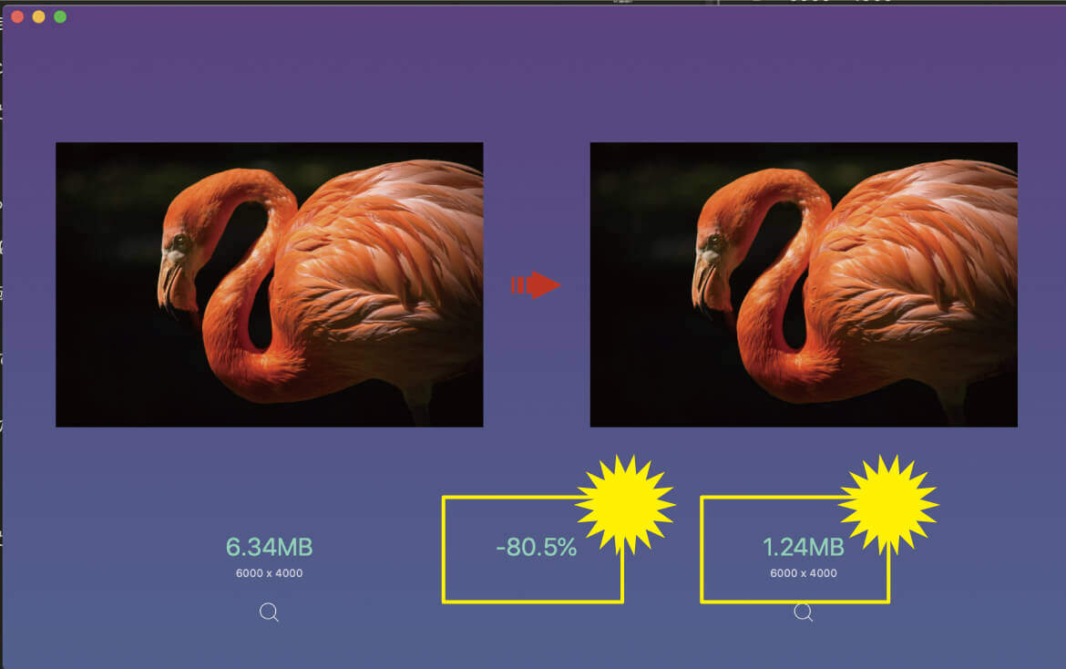 それでは、「ImageOptim - 画像オプティマイザ圧縮」がどのような性能であるかを見ていきたいと思います。
