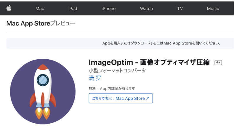 「ImageOptim - 画像オプティマイザ圧縮」はアプリケーションですので、PCに直接インストールするものになります。