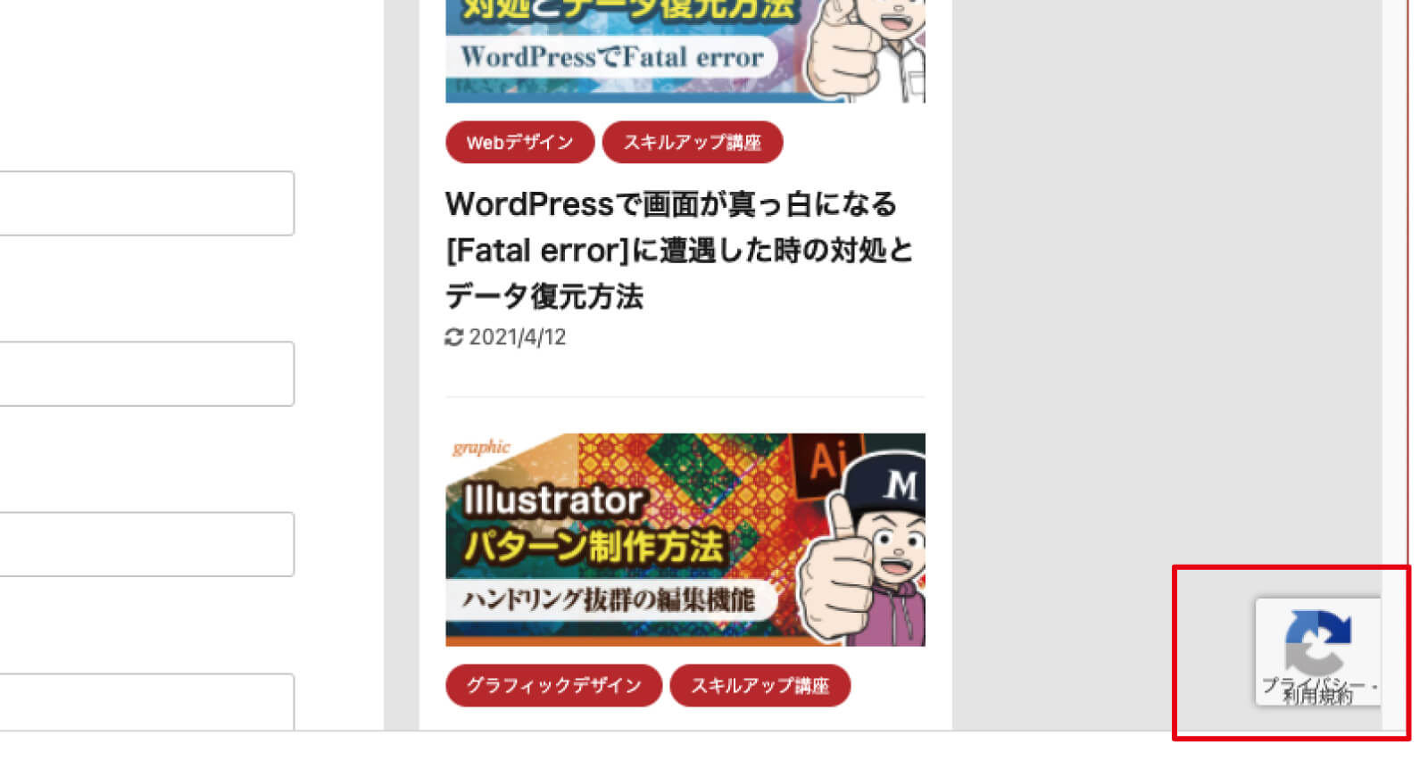 しかし、リキャプチャを設定する事でサイトスピードが落ちたり、関係のないページにまでリキャプチャのマークが表示されてしまいます。