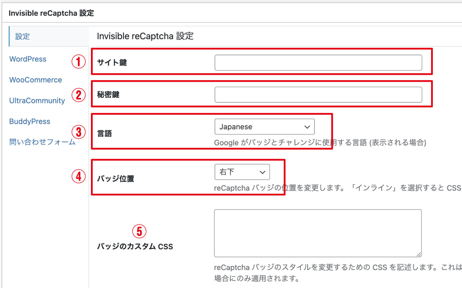 ステップ 3 「Invisible reCAPTCHA for WordPress」の設定
