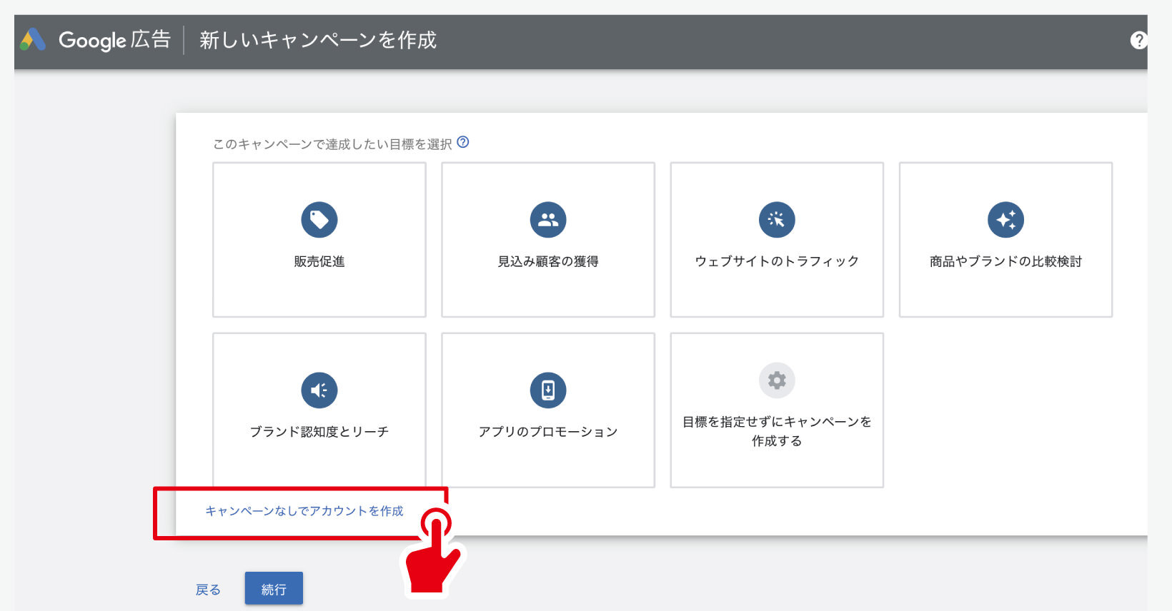 「キャンペーンなしでアカウントを作成」を押しましょう。