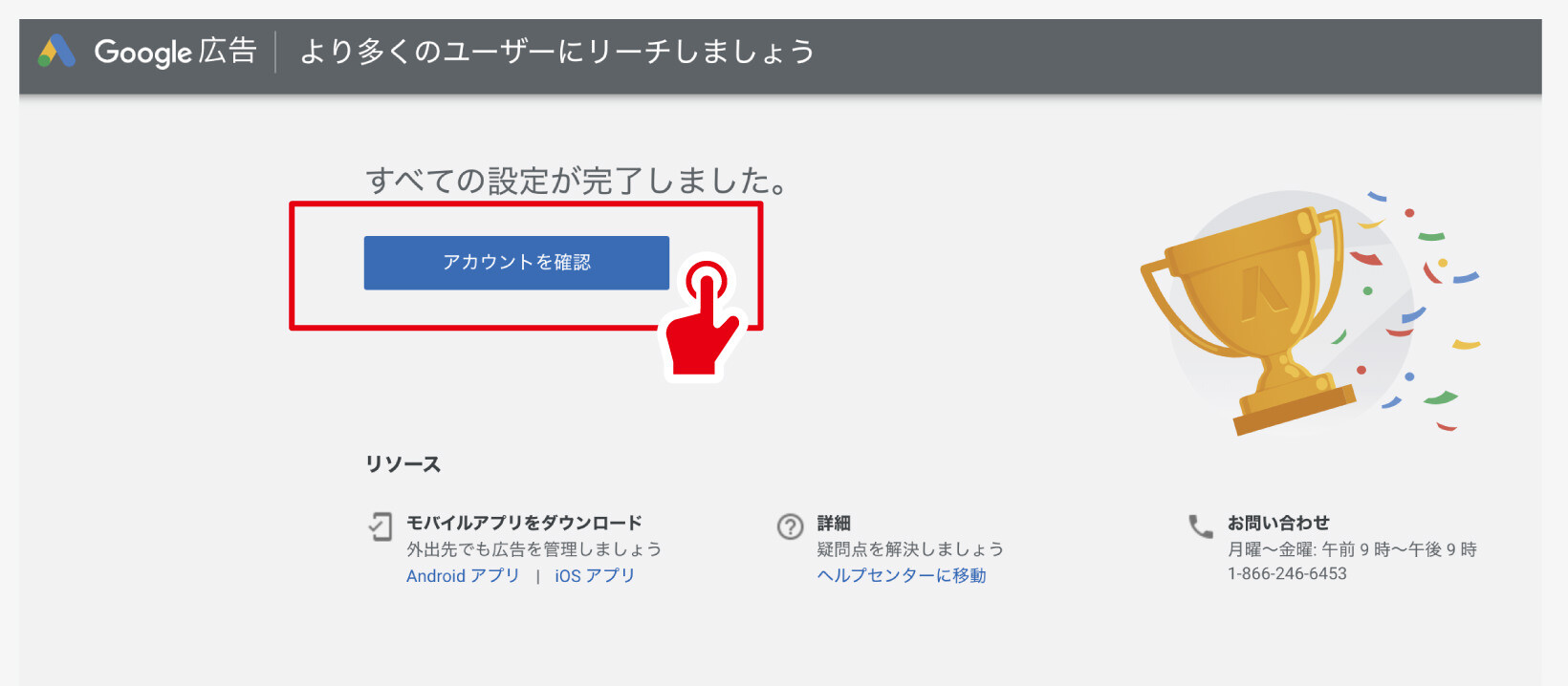 これでアカウント登録完了です。「アカウントを確認」を押しましょう。