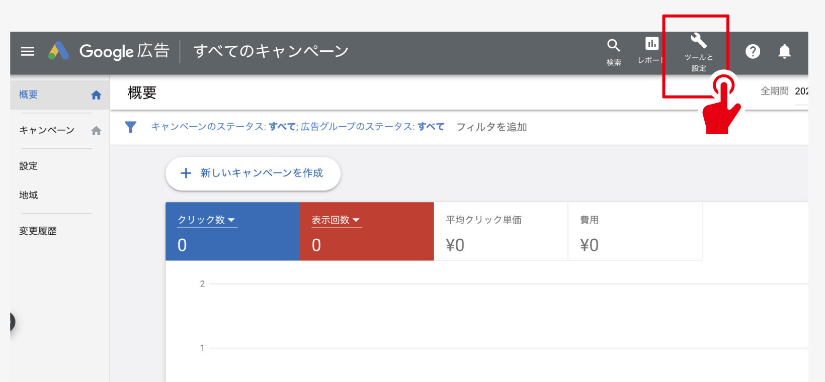 画面が切り替わったら、再度右上の「ツールと設定」→「プランニング」の中に「キーワードプランナー」がありますので押しましょう。