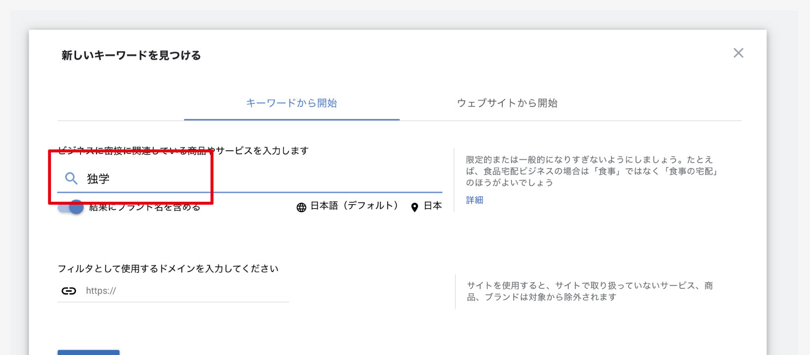 ここで気になっているワードを入れていきます。とりあえず「独学」と入れてみます。