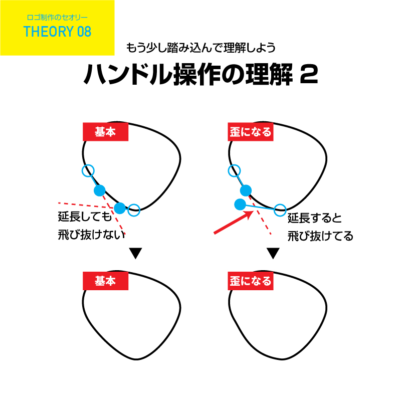 アンカーポイントが多いと歪な形(制御不能)になる事が多いです。アウトラインは、できるだけ最小アンカーポイントで制御できるように意識しましょう。