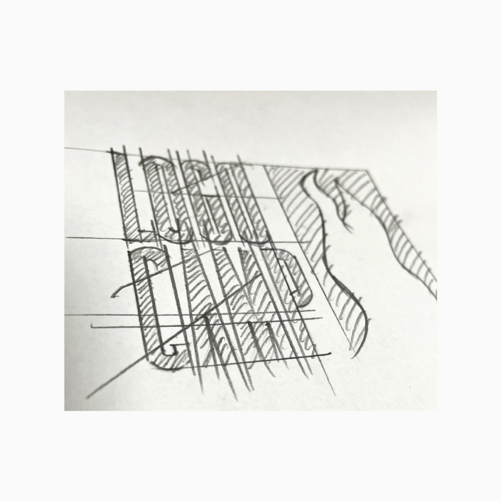 ロゴデザインがある程度形になったら、ブラッシュアップし完成度を高めていきます。スケッチや上記デザイン案を下に丁寧に形を作っていきましょう。