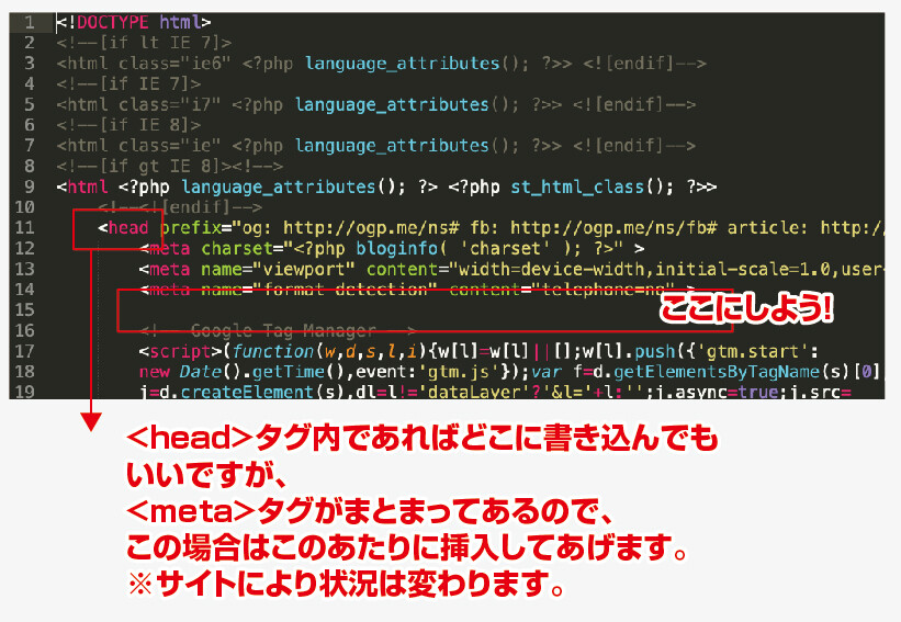 このコードを<head>タグ内に埋め込んでいけばOKです。