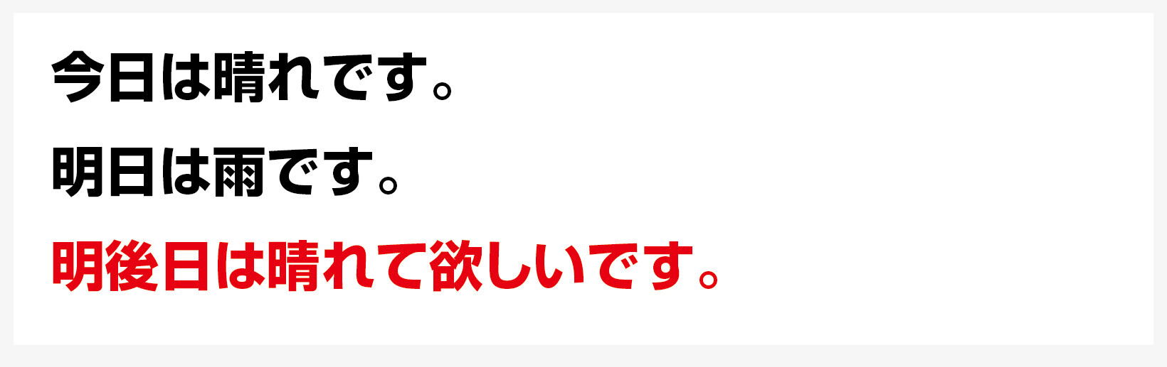 <p>明日は雨です。</p>