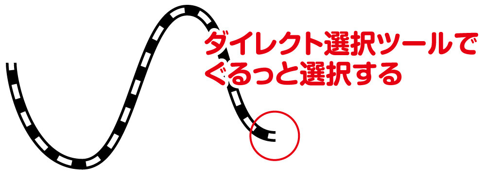 JR同様に、その線を「選択ツール」で選択し、command+[ c ]→ command+[ f ] で前面の同じ位置に複製します。