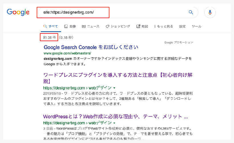 当サイトの場合だと、「site:https://designerbrg.com/」になります。