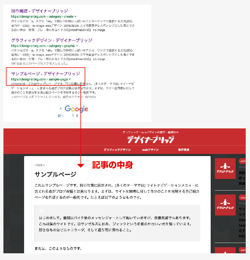 例えば私のサイトですと、「サンプルページ - デザイナーブリッジ」が気になるところです。