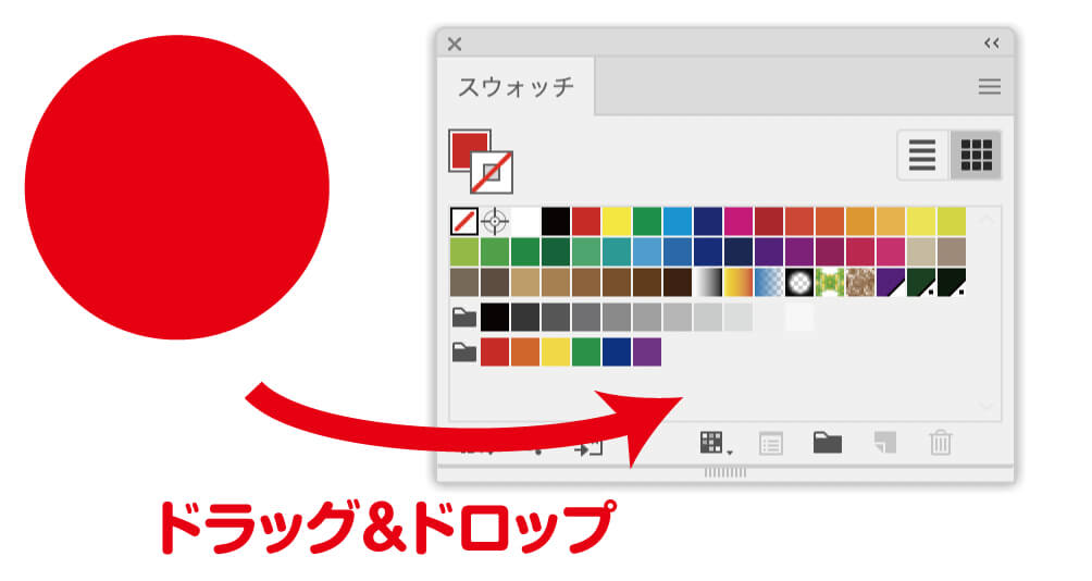 そのオブジェクトをドラッグして、スウォッチパネル(色パレット)にドロップしましょう。
