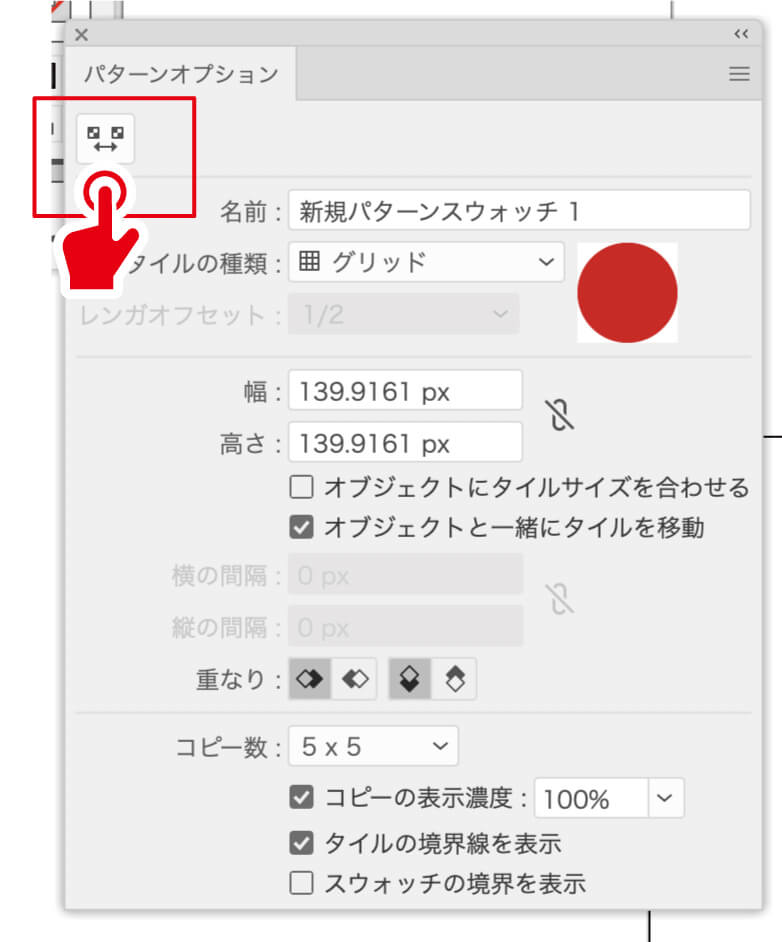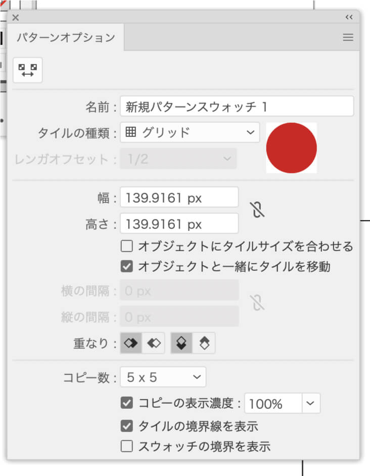 パターンを編集する為には、先ほど登録したスウォッチのパターンをダブルクリックします。すると、以下のような画面が出てきます。