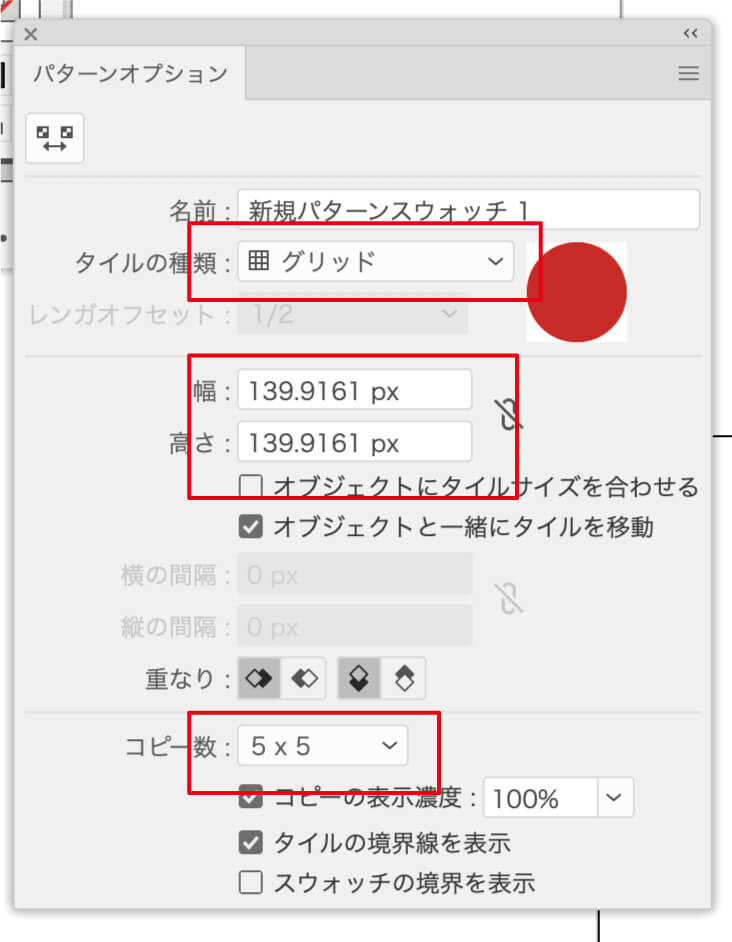 円のパターンが簡素なのでわかりずらいですが、たったこれだけでパターンが作成されました。
