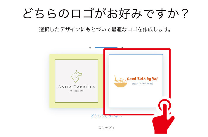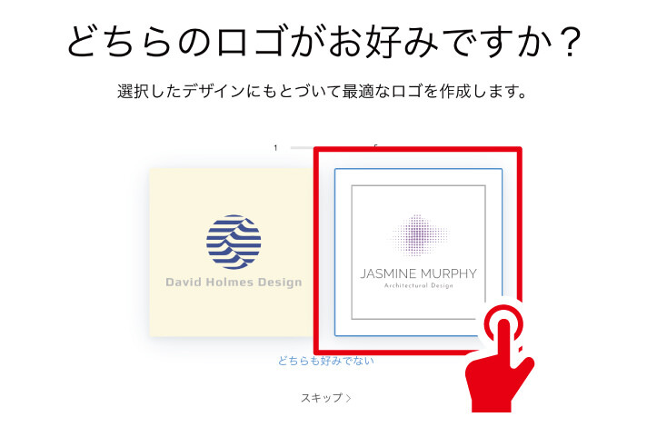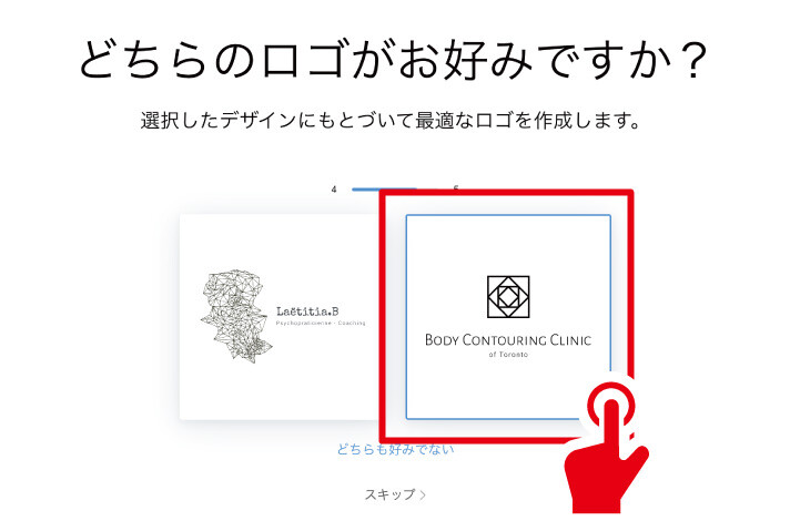 ロゴイメージのすり合わせがあります。以降画像が5種類出てきますので、2択でどちらか選んでいきましょう。