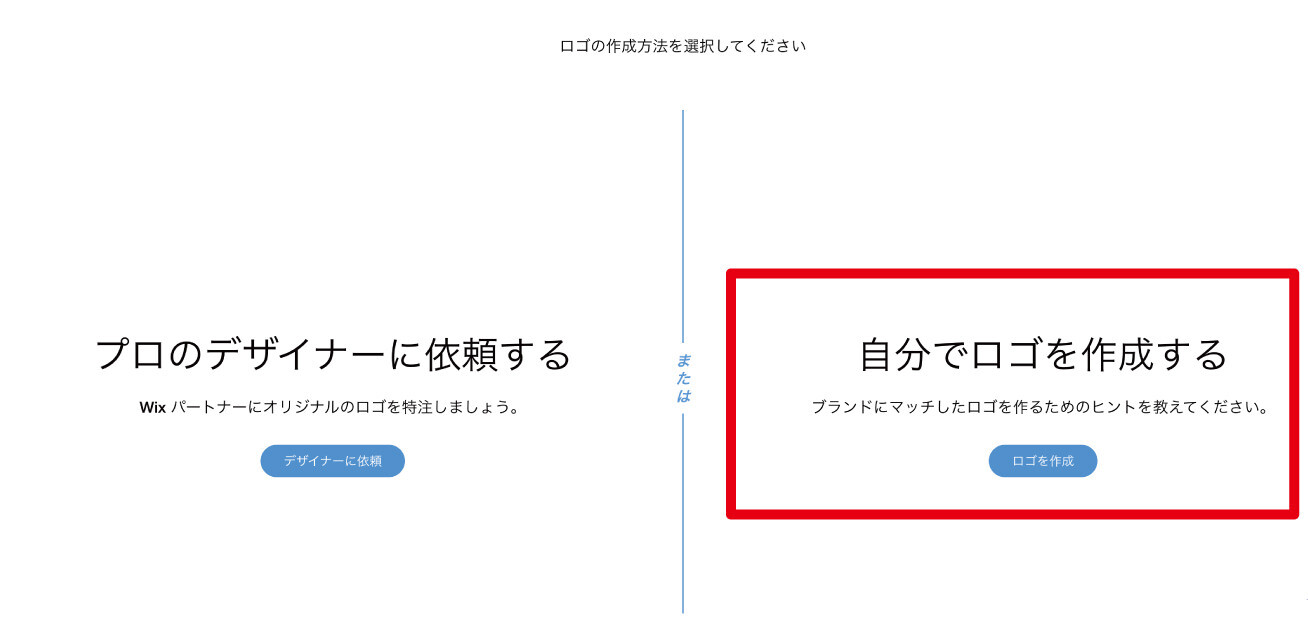 公式ページ入り口の二択から、「自分でロゴを作成する」を選択しましょう。