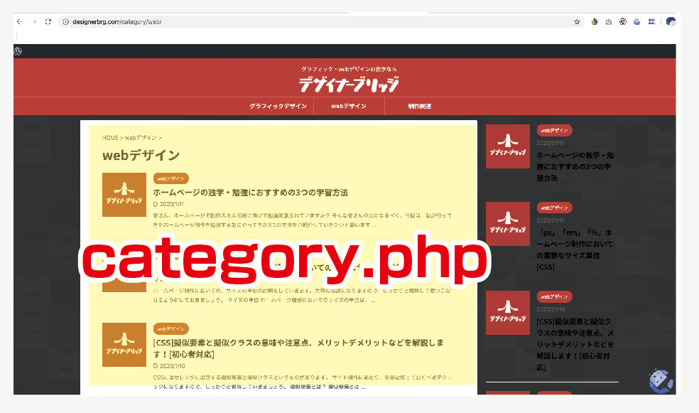 category(カテゴリー).phpは、「カテゴリー記事の一覧」に当たります。
