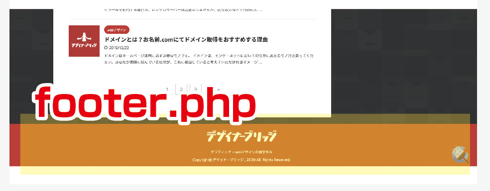footer(フッター).phpは、「どのページでも共通のサイト下部」に当たります。