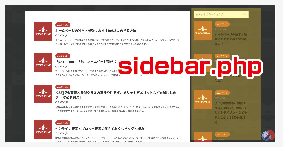 sidebar.phpは、「どのページでも共通のサイドバー」に当たります。