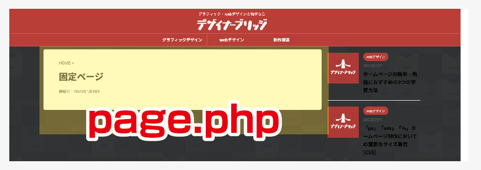 page.phpは、「共通の固定ページ」の<main>エリアに当たります。記事と似ていますが、一応区別があります。