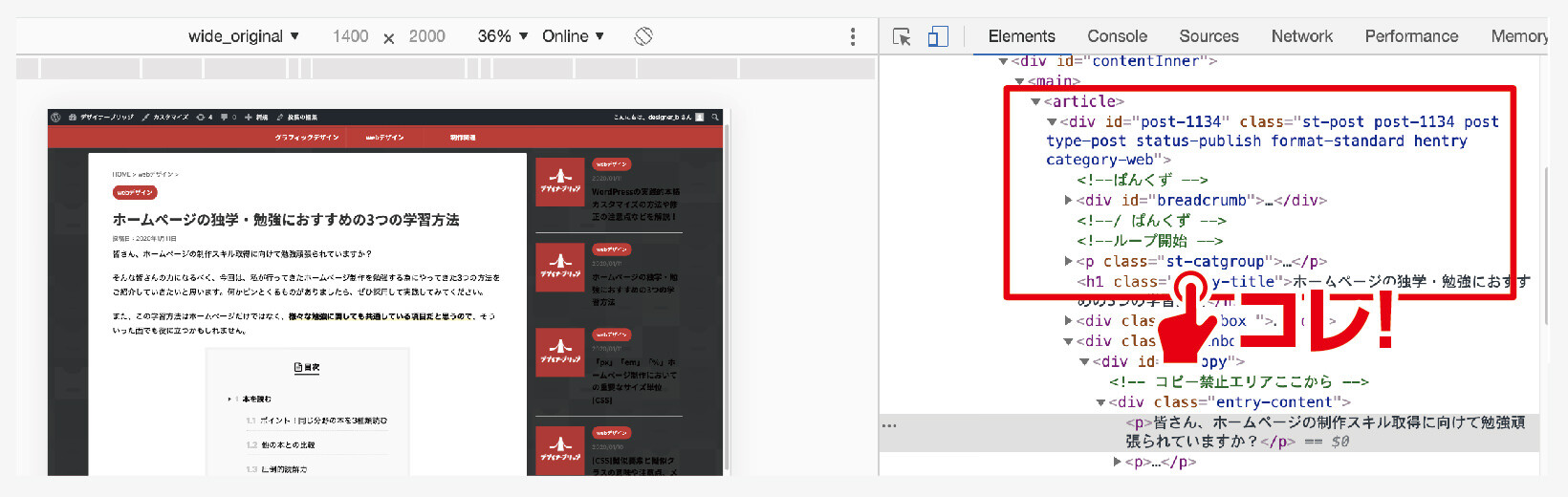 CSSを修正するに当たり、該当箇所のタグ要素を把握する事は最重要項目になります。該当箇所がわからないままでは修正のしようがありません。